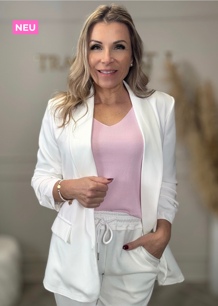 Entdecke unsere zeitlose Blazerjacke mit gerafften Ärmeln – der perfekte Allrounder für jede Gelegenheit! Ob sportlich mit Jeans und Sneakers oder schick mit einer Bluse und Pumps, dieser Blazer verleiht deinem Look immer das gewisse Etwas. Die raffinierten Ärmel sorgen für einen modernen Twist und machen die Jacke zu einem Must-Have in deinem Kleiderschrank. Setze ein Statement und kombiniere sie ganz nach deinem Stil!