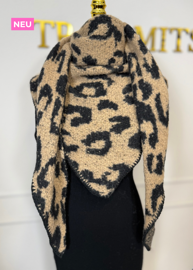 Dieser kuschelig weiche Dreiecksschal im modernen Leo-Muster ist das perfekte Accessoire für stilbewusste Outfits. Das anschmiegsame Material sorgt für ein besonders angenehmes Tragegefühl und hält dich selbst an kalten Tagen wunderbar warm. Durch seine markante Optik wird der Schal zum absoluten It-Piece, das jedem Look eine trendige und zugleich gemütliche Note verleiht.