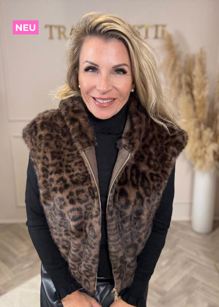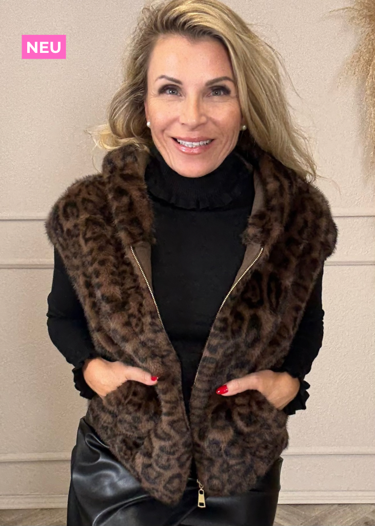 Mädels diese stylische Fake Fellweste im Leolook Istrien echter Eyectcher. Goldene Hardware setzt glänzende Akzente, während die Kapuze zusätzlichen Komfort und Style verleiht. Vielseitig kombinierbar von coolen City-Looks bis hin zu lässigen Weekend-Outfits. Jetzt Trend setzen!