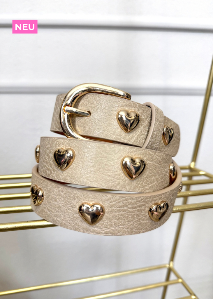 Dieser wunderschöne Gürtel mit Herz-Detail, feinen Applikationen und goldfarbener Hardware verleiht jedem Outfit eine elegante und feminine Note. Ideal zum Kombinieren mit Kleidern, Röcken oder Jeans.