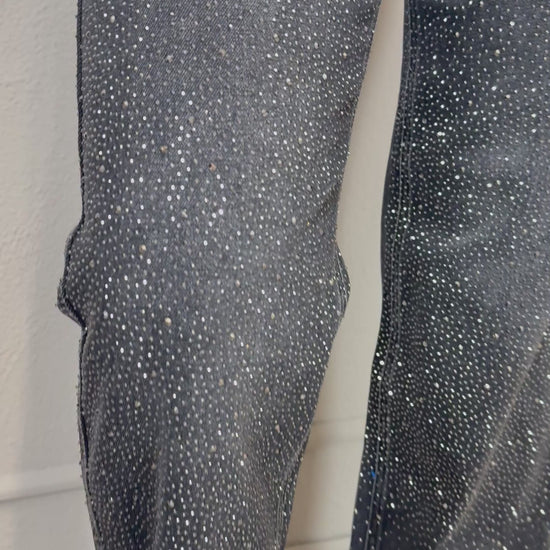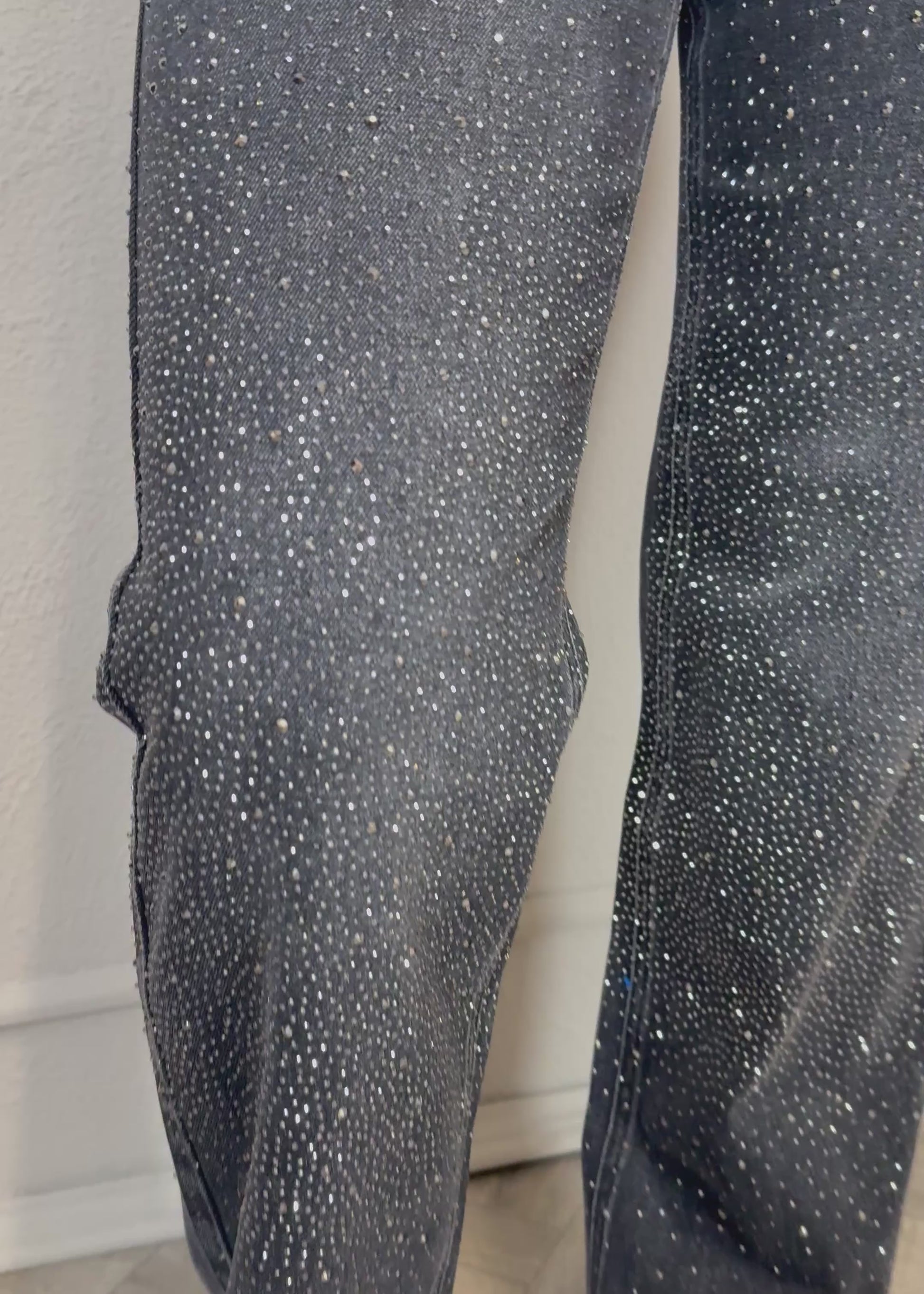 Diese Jeans ist ein echtes Highlight! Im vorderen Bereich aufwendig mit funkelnden Steinchen besetzt, verleiht sie jedem Outfit eine Extraportion Glamour. Der weite gerade Schnitt sorgt für eine schmeichelhafte Silhouette, während das hochwertige Denim-Material angenehmen Tragekomfort bietet. Ob casual mit Sneakern oder elegant mit Heels kombiniert – diese Jeans zieht alle Blicke auf sich und macht jeden Look zu etwas Besonderem. Einfach nur WOW!