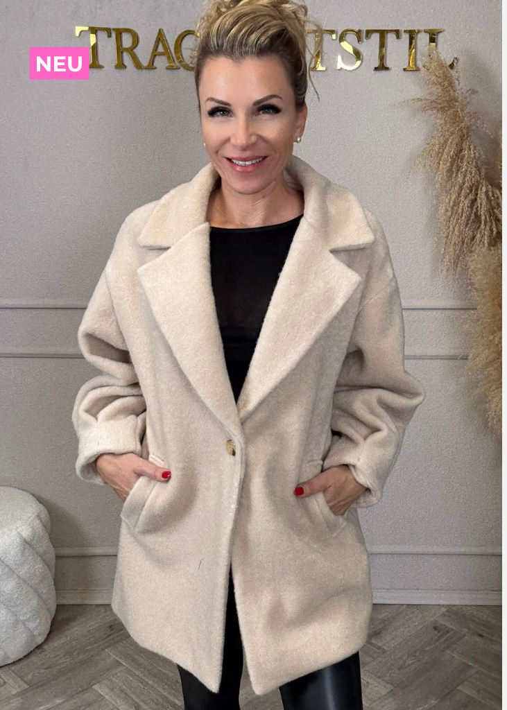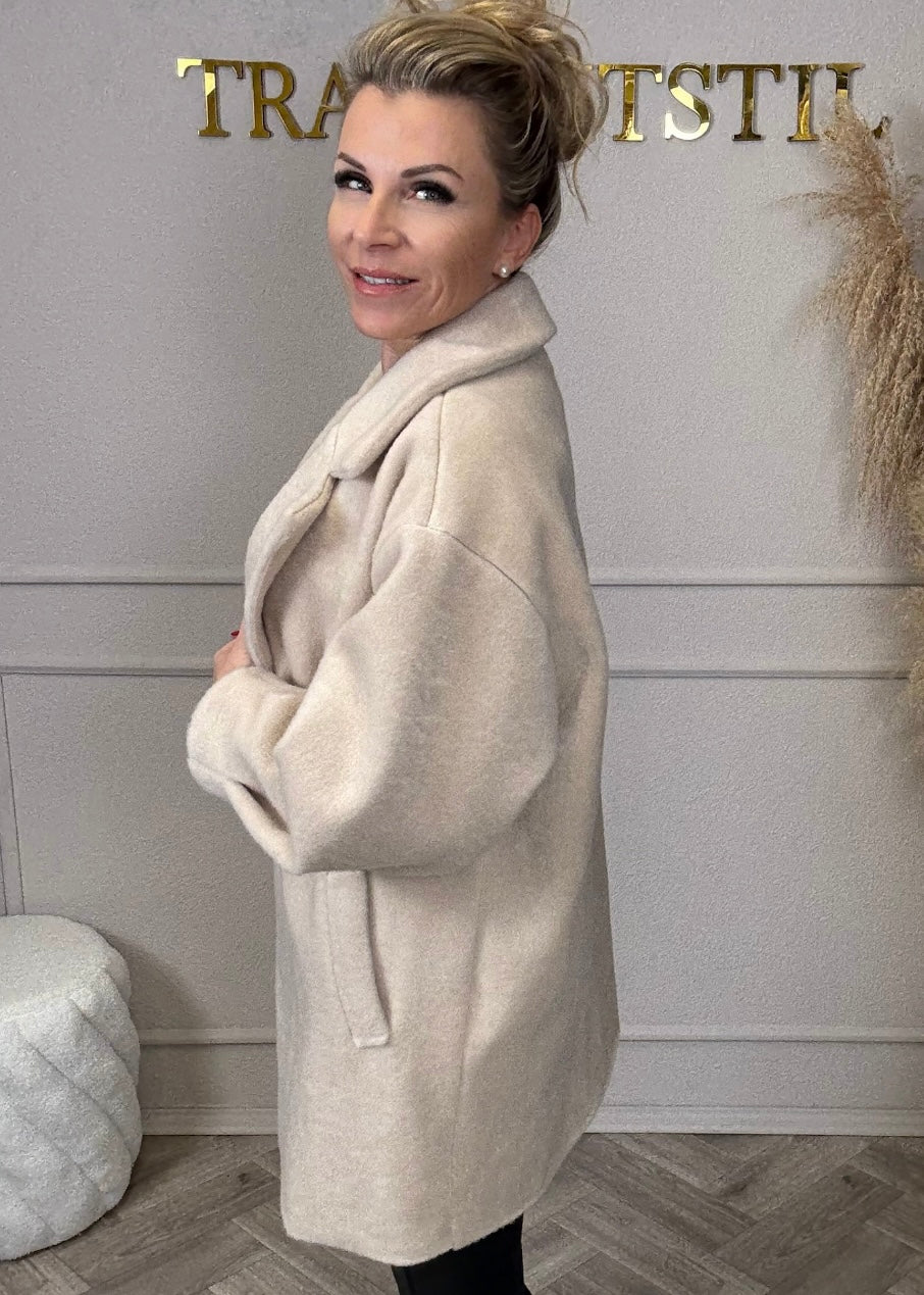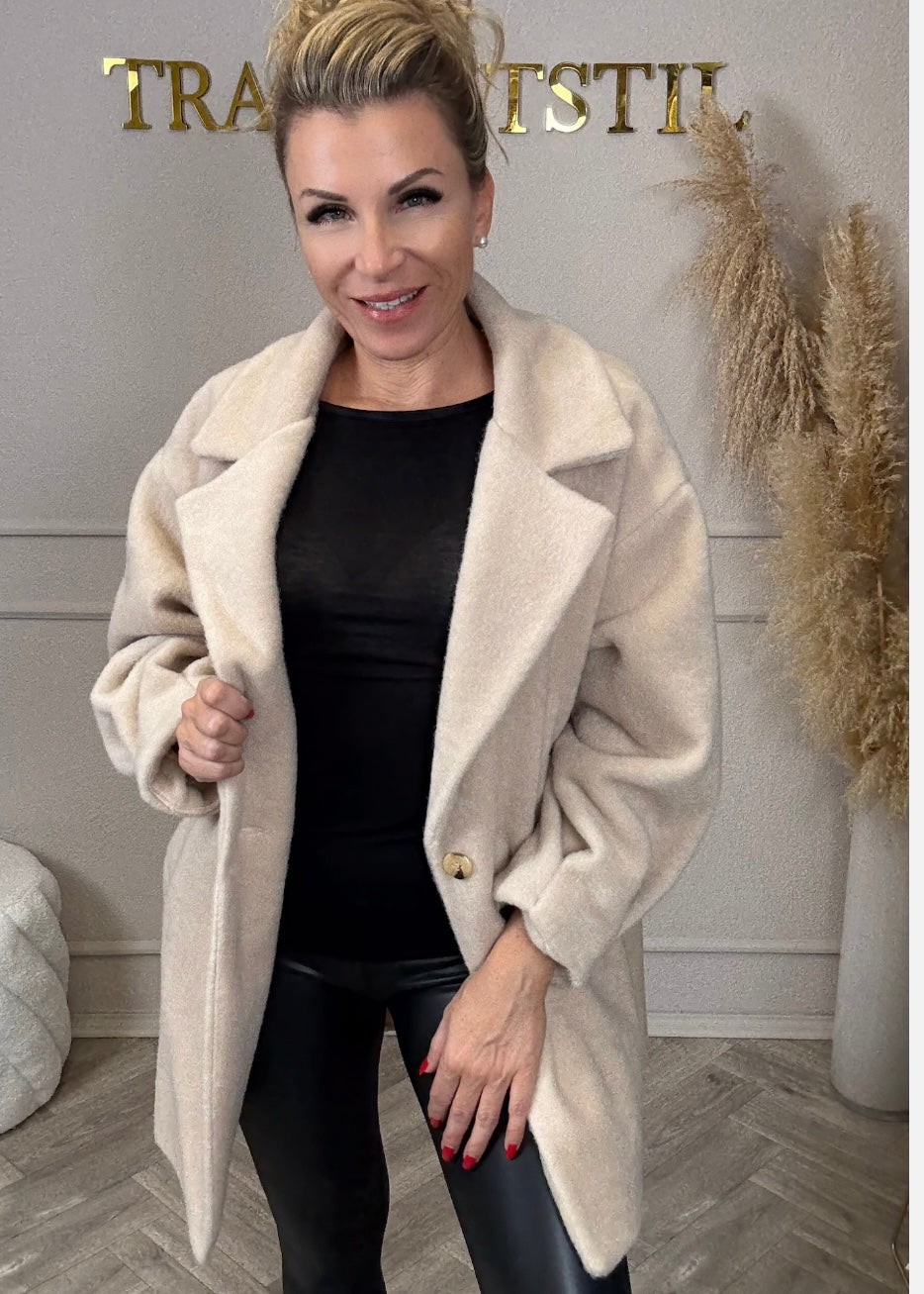 Dieser weiche Kurz-Mantel in elegantem Beige ist ein Must-have für die kühleren Tage. Er überzeugt durch sein angenehmes Tragegefühl und zeitloses Design.