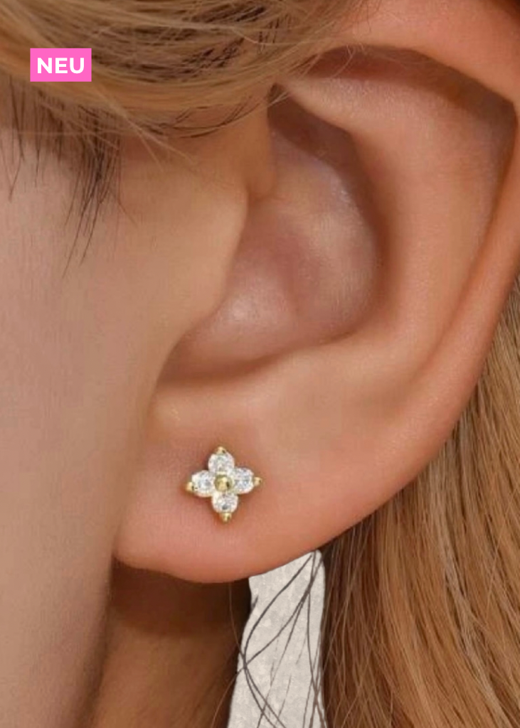 Verleihen Sie Ihrem Look einen Hauch von Eleganz mit unseren bezaubernden Ohrringen! Diese 4 mm großen, goldfarbenen Ohrringe sind mit funkelnden silbernen Strasssteinen verziert, die jedem Outfit einen glamourösen Akzent verleihen.