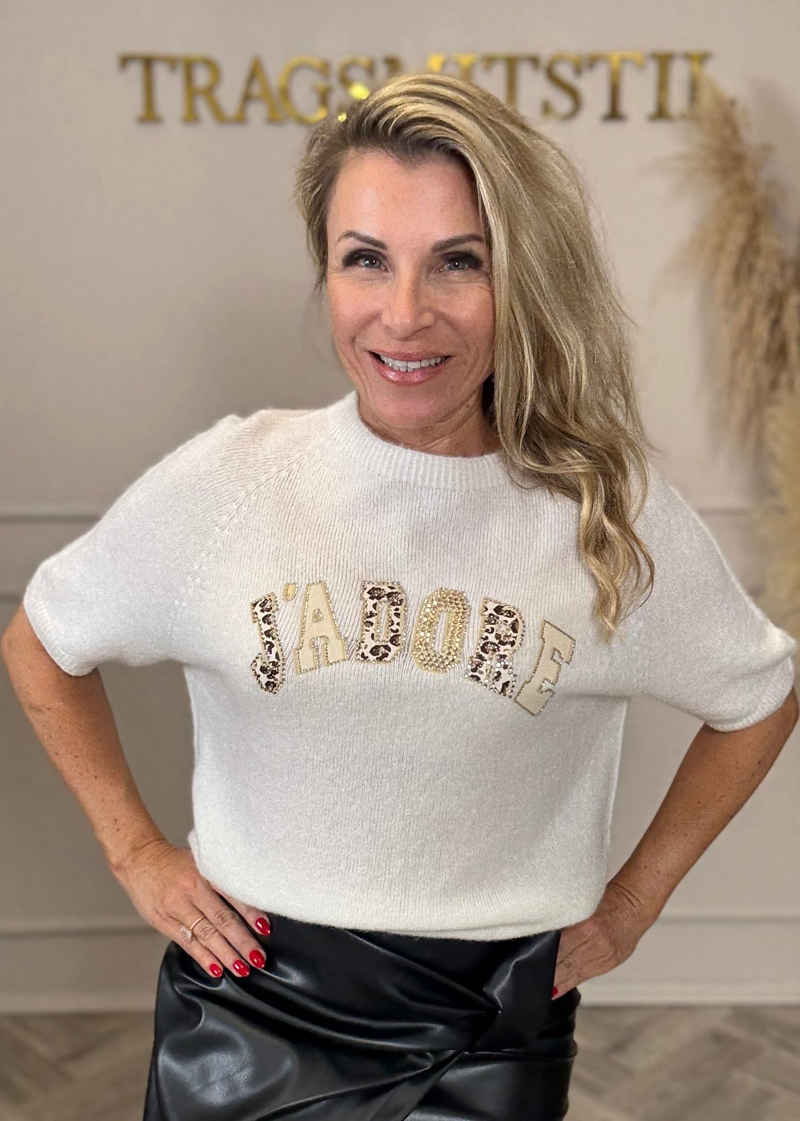 Du wirst diesen kurzarm Pulli lieben… kuschelig zart mit seinem Jadore Print mit zahlreichen Glitzersteinen!