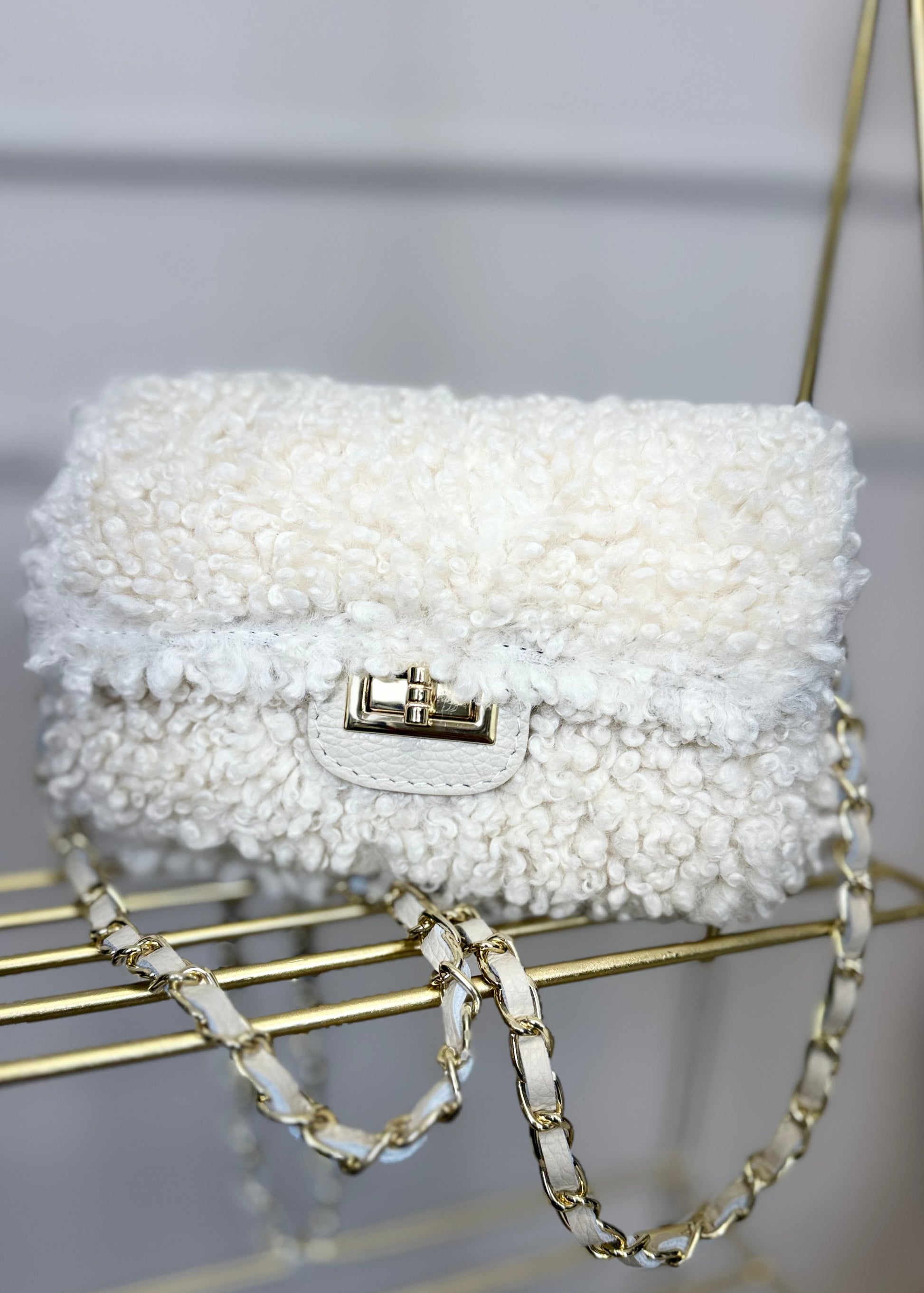 Ein absolutes Must-have für Fashionistas! Diese stylische Tasche kombiniert trendiges Fell-Design mit edlen goldenen Details und wird so zum perfekten Hingucker für jedes Outfit
