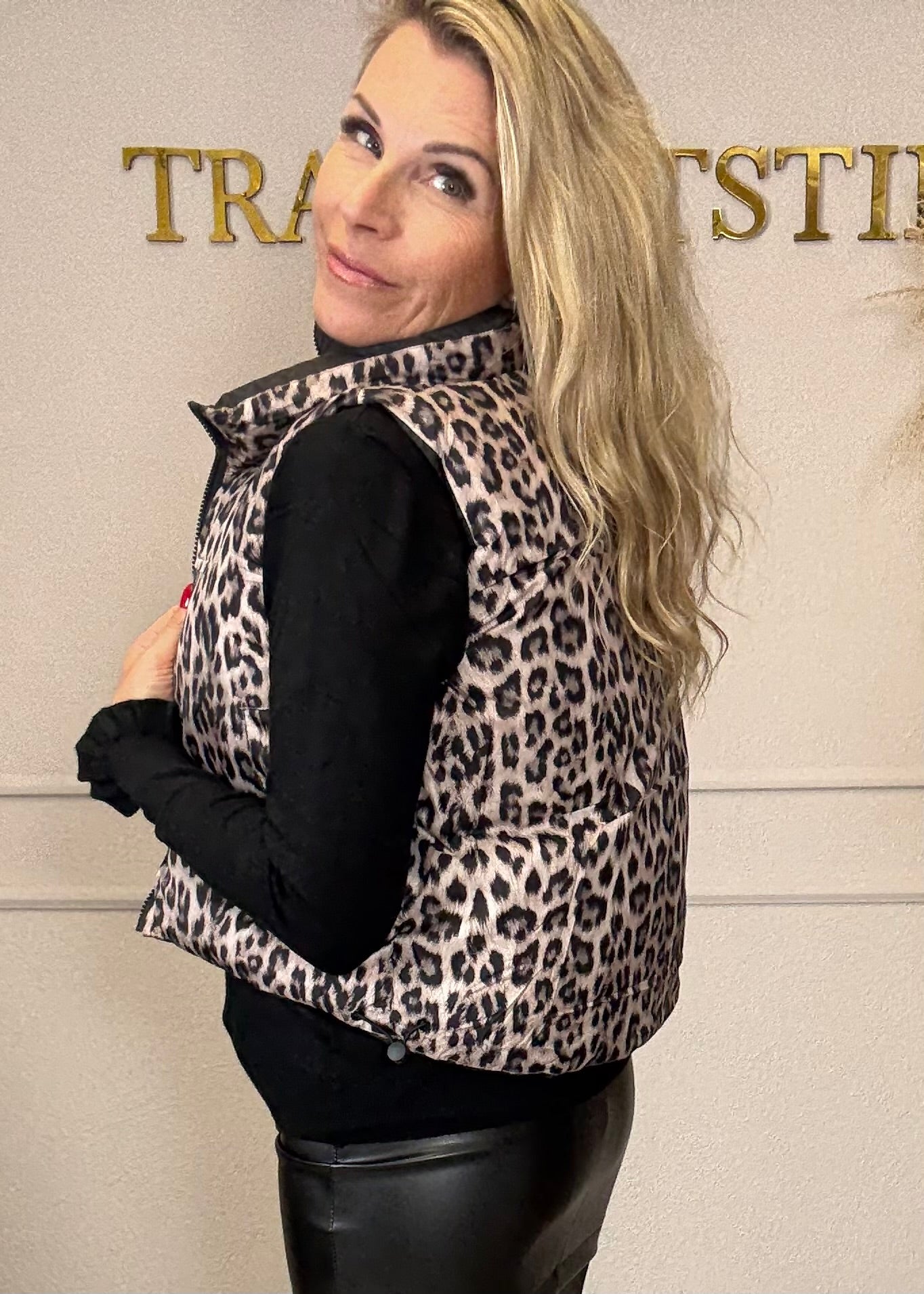 Entdecke unsere stylische Wendeweste in Leo – zwei Looks, ein Ding! Auf der einen Seite stylischer Leo-Print, auf der anderen Seite zeitlos unifarben. Genialer Tragekomfort, perfekte Passform und warme, leichte Materialien. Ob City-Glanz oder Wochenend-Trip – diese Weste macht jeden Style mit. Zwei Westen, unendlich viele Outfits. Jetzt zugreifen und flexibel bleiben!