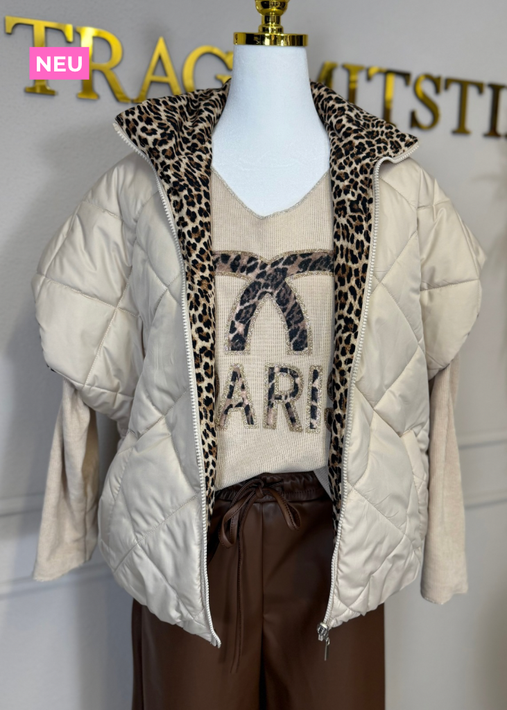 Entdecke die Vielseitigkeit in stilvoller Form – unsere elegante Wendeweste in edlem Schokobraun und warmem Beige gepaart mit Leofutter ist das perfekte It-Piece für jede Saison! Ob lässig oder schick, die zwei tragbaren Seiten bieten dir maximale Kombinationsfreiheit. Die hochwertige Verarbeitung und das zeitlose Design machen sie zum Must-have für modebewusste Frauen, die Wert auf Stil und Funktion legen. Einfach wenden – doppelt gut gekleidet!