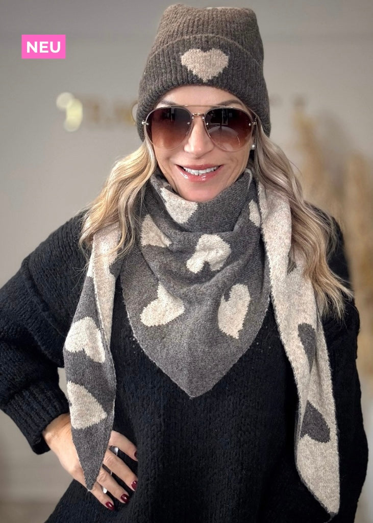 Diese wunderschöne Wollmütze mit süßem Herz bietet kuschlige Wärme und einen stylischen Look zugleich. Sie verleiht jedem Winteroutfit eine besondere, modische Note und trägt sich angenehm weich.